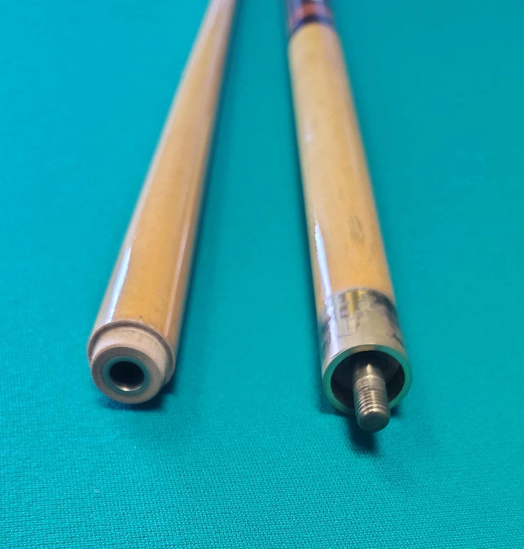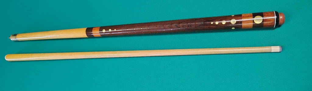 Another discontinued cue with details worked into the inlays on the butt, and the unique style of this engraved wrap. Stamped with the Model and Region into the top of the cue butt.