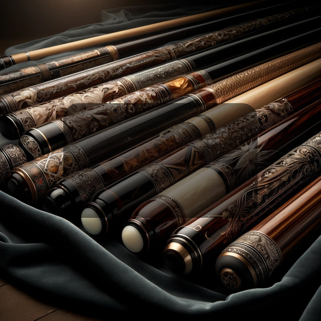 Lucasi Custom Duo Garnet Red/Exotic Apitong Cue With Embossed Leather Wrap