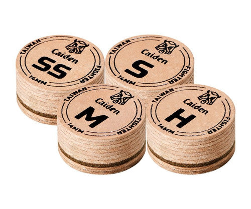 This is a tip to redefine your game! The Caiden Fighter tip is a blend of advanced technology for professionals alike. This makes for the ideal choice for amatures and professionals alike. This is a tip made of 10 layers of tanned and undyed premium pigskin leather. Provides excellent cue ball spin and control with minimal effort and holds chalk exceptionally well and does not glaze over. More Power, More Spin, More Grip.