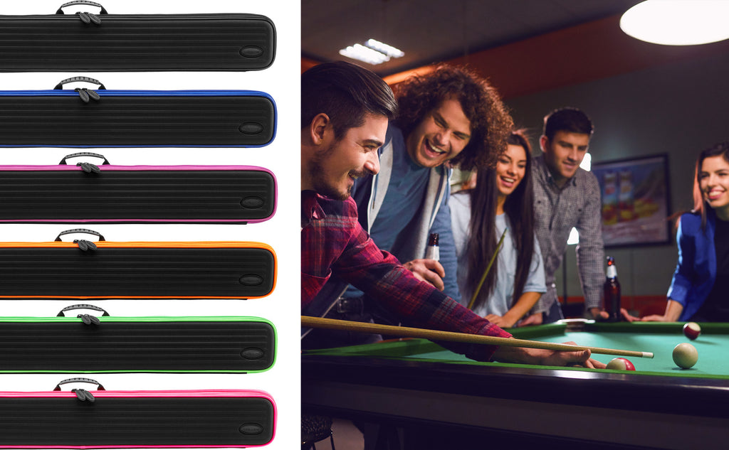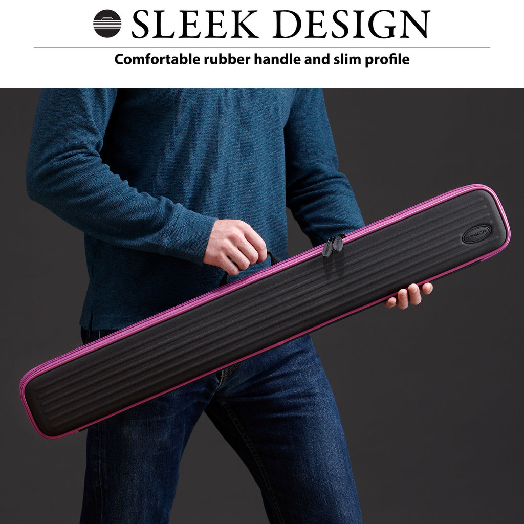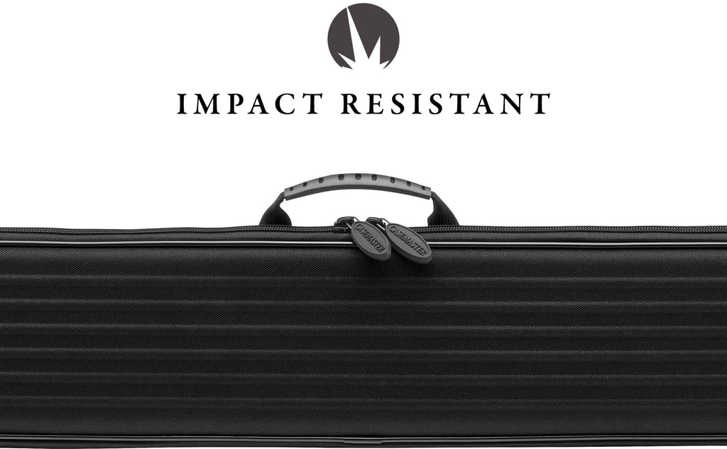 The Casemaster Parallax billiard cue case is the ultimate single cue storage solution. It’s made out of 600D Oxford Fabric, a heavyweight material that is exceptionally durable. The Parallax pool cue case is designed to keep your cue safe from absorbing impacts and moisture. The tightly woven fabric repels water, keeping your cue nice and dry. It’s also abrasion-resistant, so it won’t rip apart exposing your cue to the elements. Inside are form-fitting foam slots that gently hold your cue in place, keeping it from rattling during transport. The foam inserts also help absorb impacts, so you don’t need to worry about your cue cracking or warping. The Parallax cue case fits one disassembled pool cue, one butt and one shaft, as well as a spare chalk cube. Cue and chalk sold separately.