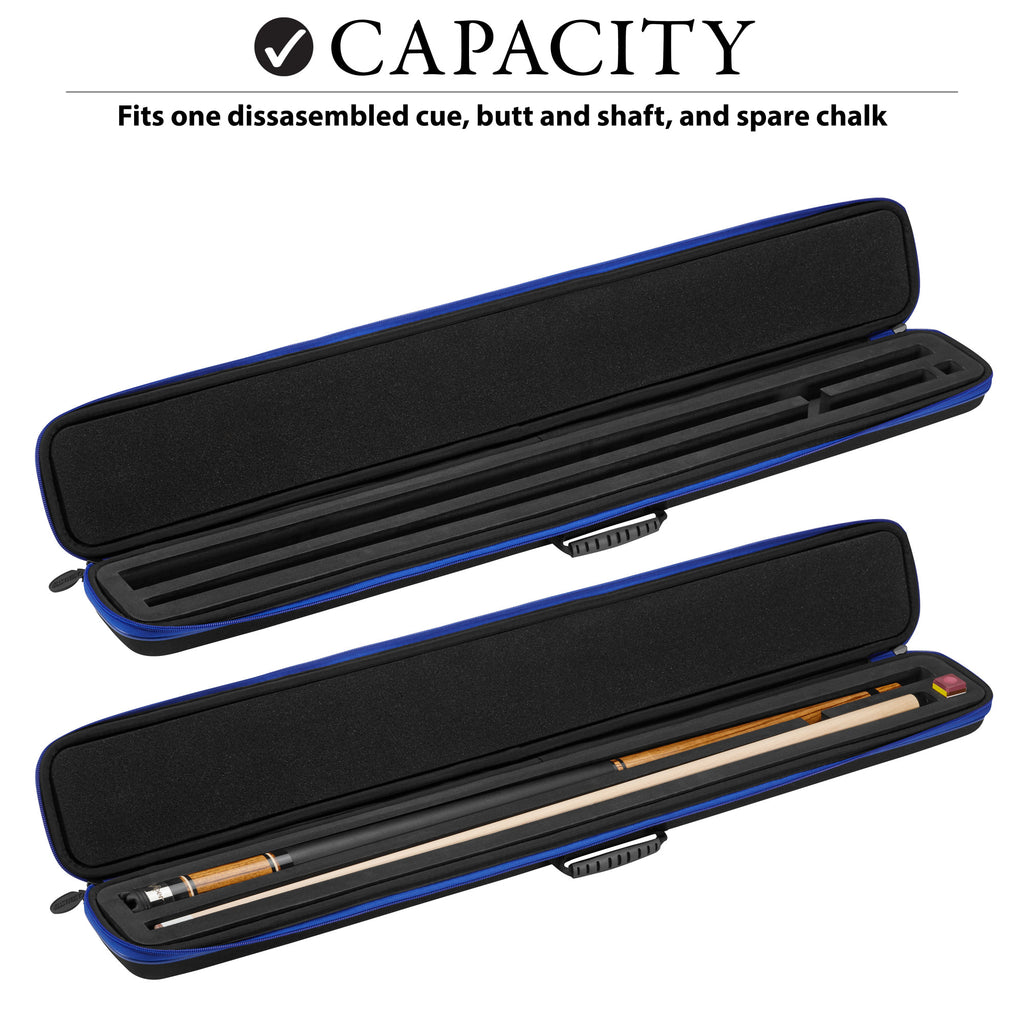 Capacity - Fits a disassembled pool cue, one butt and one shaft, as well as spare cue chalk, cue and chalk sold separately