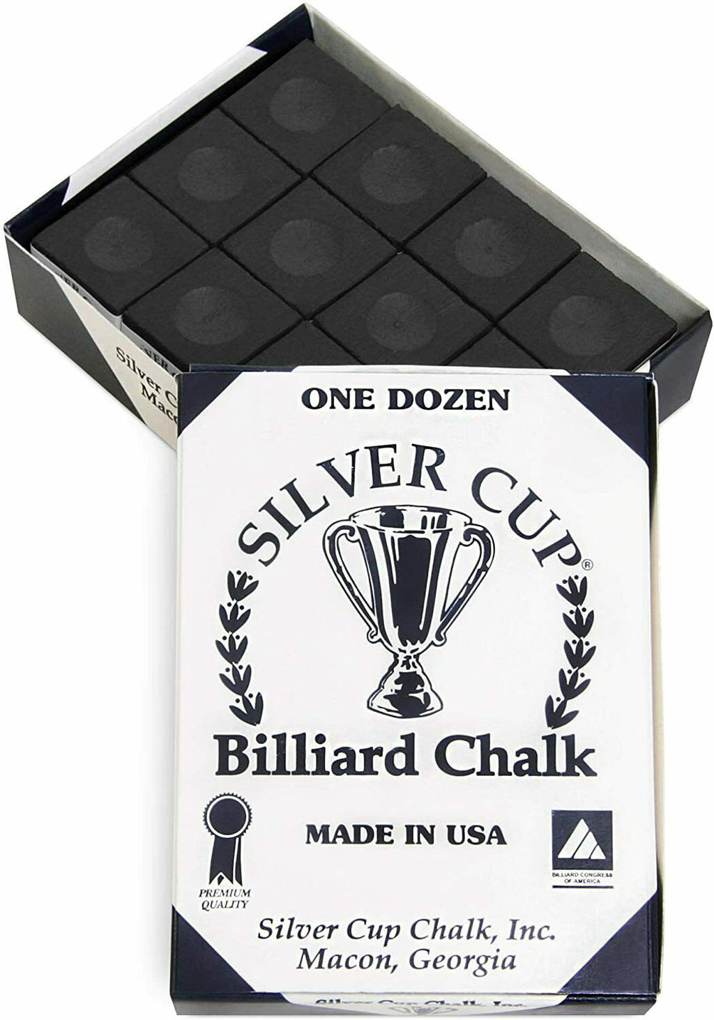 Championship Chalk is one of the highest quality pool cue chalks on the market. Championship Chalk coats pool cue tips smoothly, evenly and is manufactured to assure adherence to the cue tip and reduce costly miscues. Players of all levels can rely on this chalk to give them the right friction, grip and spin…the right results. This chalk was formerly known as Silver Cup chalk. Each box contains 12 cubes.