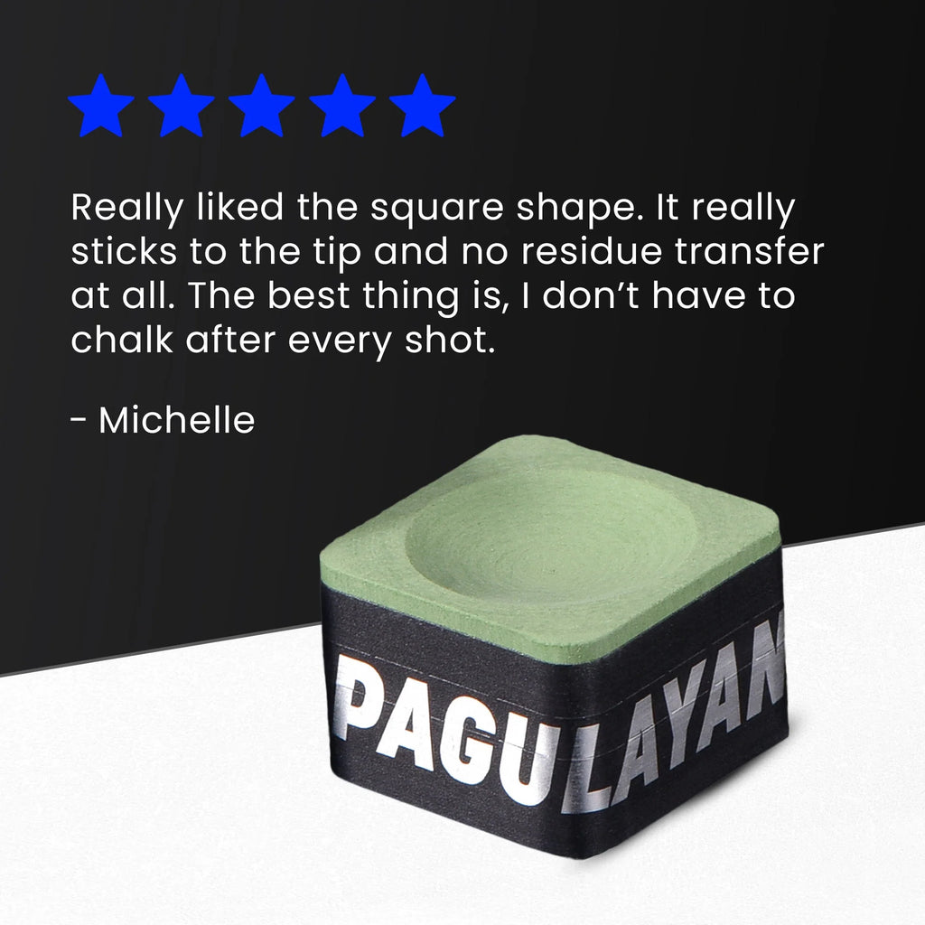 Long lasting, PAGULAYAN CHALK sticks to the tip exceptionally well. Eliminating the need to chalk after each shot